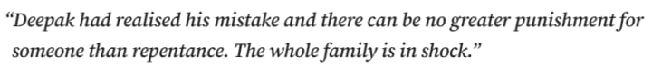 Speaking to reporters, Deepak’s older brother, Vijay, described how Deepak was said to have deeply regretted what he had done: