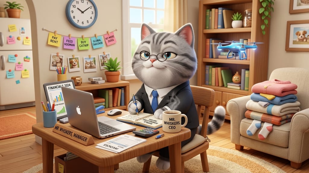 Things reached peak absurdity when Mr. Whiskers started scheduling my life. He would block my calendar with nap times for him and work reminders for me. He even created a spreadsheet titled “Humans: Training Required”.