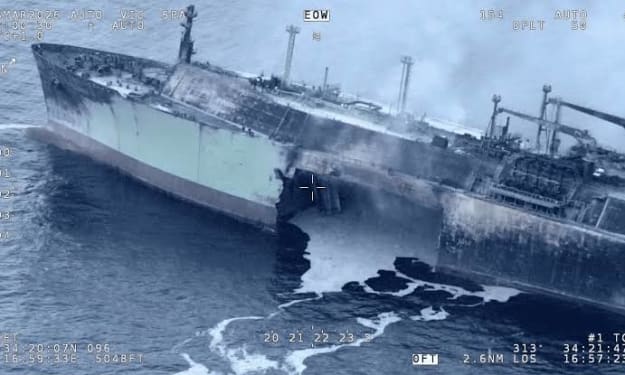Russian ‘Shadow Fleet’ LNG Tankers Reroute After Blast Sinks ‘Arctic Metagaz’ in Mediterranean. AI-Generated.