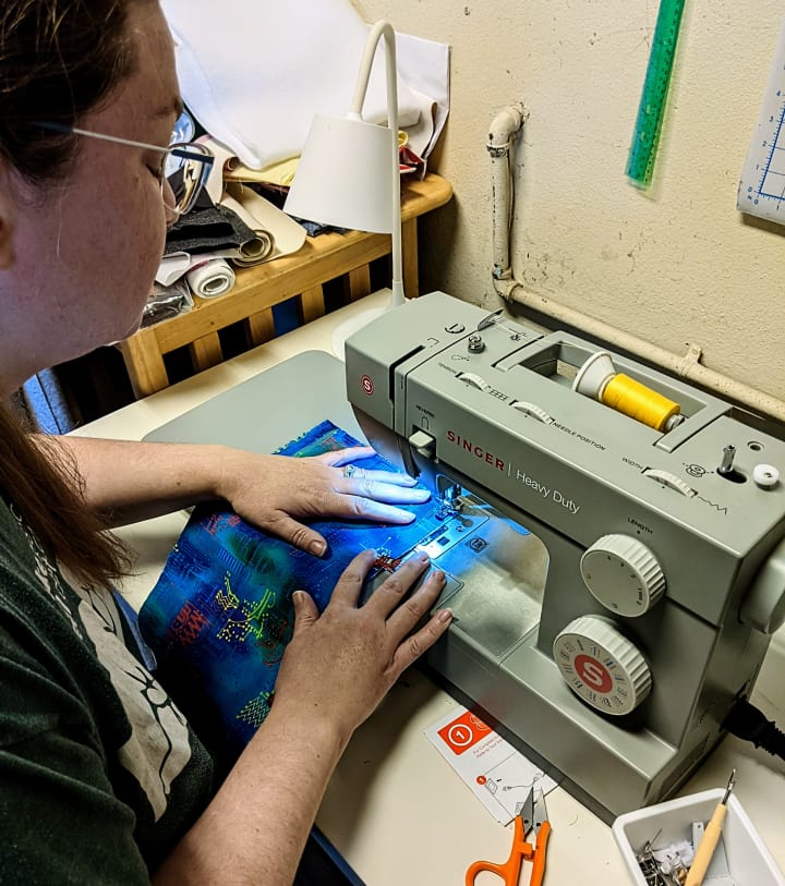 It was the pandemic that gave me the time, and honestly, the need, to pick it up again as a hobby. I quickly grabbed some boxed up fabrics and began creating masks for my family. As I started to use it more often, I realized what I had been missing for so long. I just love creating - being able to make something that didn't exist before, to make people happy with the things I make. Slowly, a new project began to take shape. I was slowly building an army of clutches and small bags that I'm hoping to start selling once quarantine has been figured out where I live. When my kids are big enough to both be in school, I can't work in an office again. I used to process loans for a mortgage company. The people were fun, but, as you can imagine, the job was stressful and demanding. Coordinating with everyone involved and going through paperwork had strict deadlines. Sewing is a passion, a happiness, that I actually want to pursue.