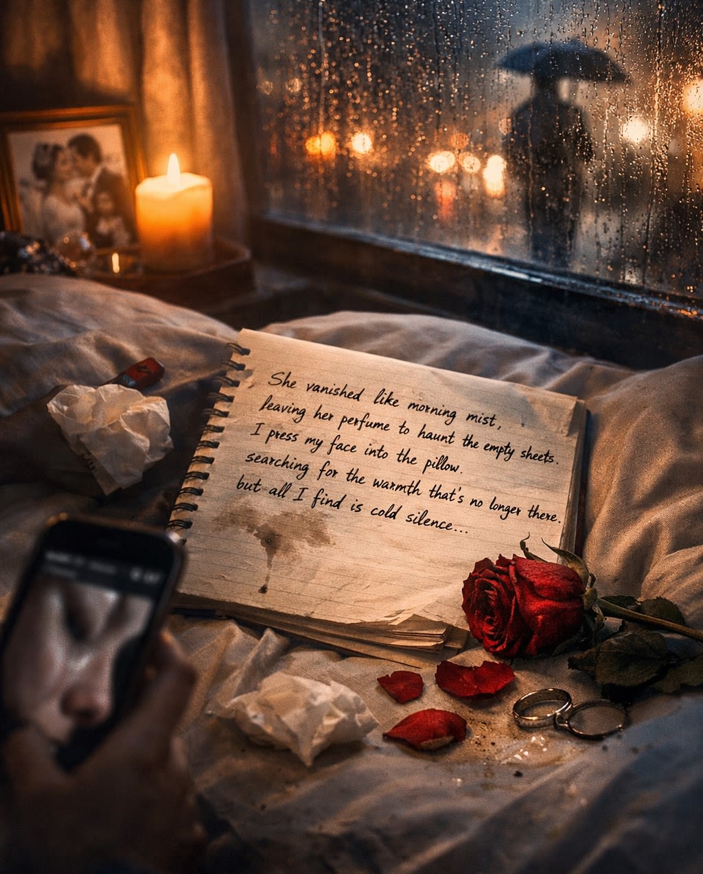 Many readers say this scene feels painfully familiar. The scent someone leaves behind. The empty side of the bed. The strange quiet that suddenly fills a room that once felt alive.