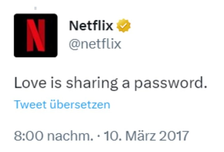 Anyways, this got me thinking. You remember when Netflix came in the mail? TiVo? The way Hulu started out as a website you could just go to and watch things online for free? Recording things to be able to fast forward through commercials? Then streaming came along and we were promised that for just one low monthly price, we would NEVER have to watch another ad. What happened to that? Now for more than that low monthly price we all started out with, we get to watch ads AND some of the content is still behind a paywall. Why am I paying a monthly fee to get unlimited content but yet, I still have to pay for a movie from the 80's? And why am I not allowed to share the password for the account I pay for? Especially when Netflix once shared this: