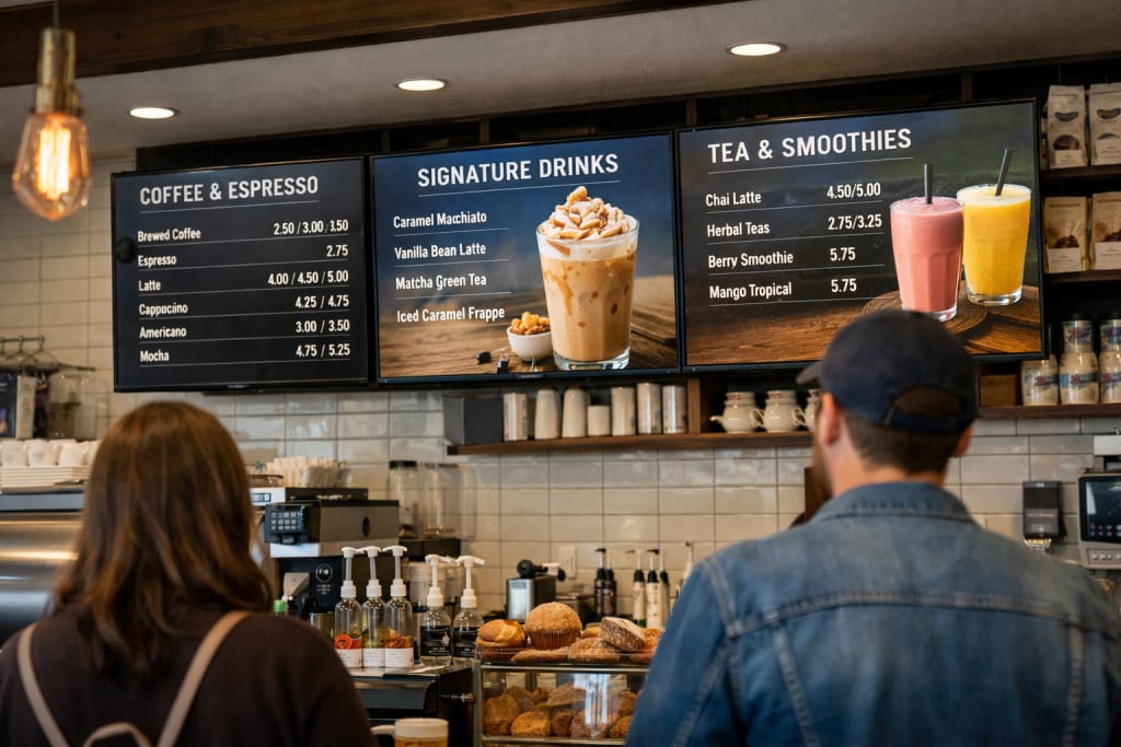 As coffee shops expand their menus and customer expectations continue to evolve, static menu boards are gradually being replaced by digital displays.